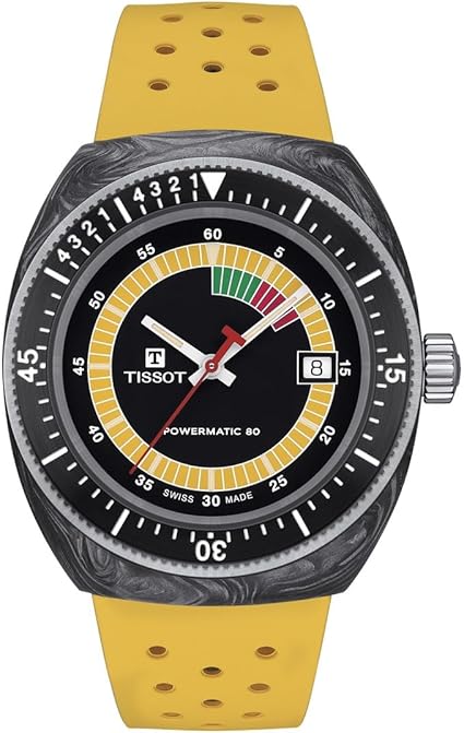 Tissot Unisex Sideral S Powermatic 80 316L Stainless Steel case with Black and Grey Marbled Forged Carbon Automatic Watches, Yellow, Rubber, 20 (T1454079705700)