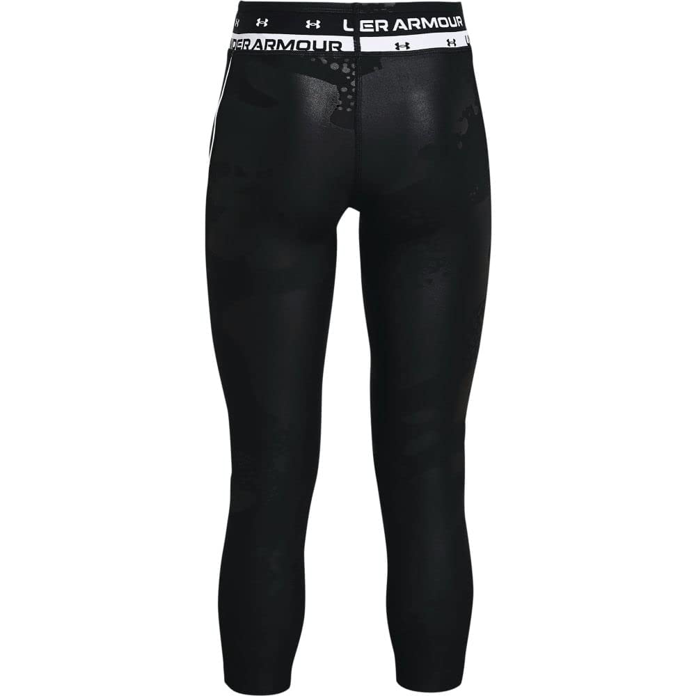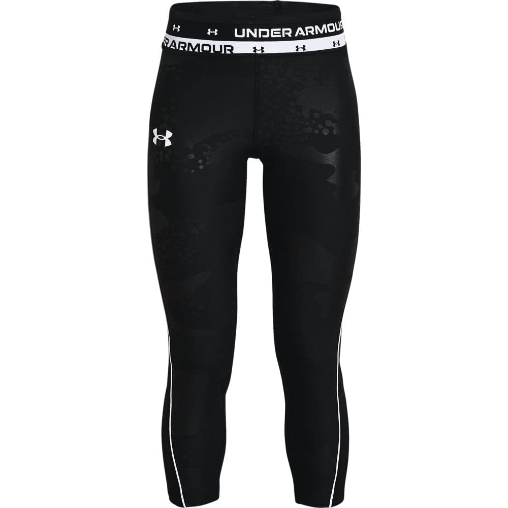Under Armour Girls' HeatGear Armour Emboss Ankle Crop , Black (001)/White , Youth Small