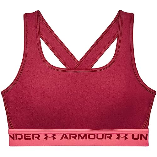 Under Armour Women's Crossback Mid Impact Sports Bra , Black Rose (664)/Octane , Small