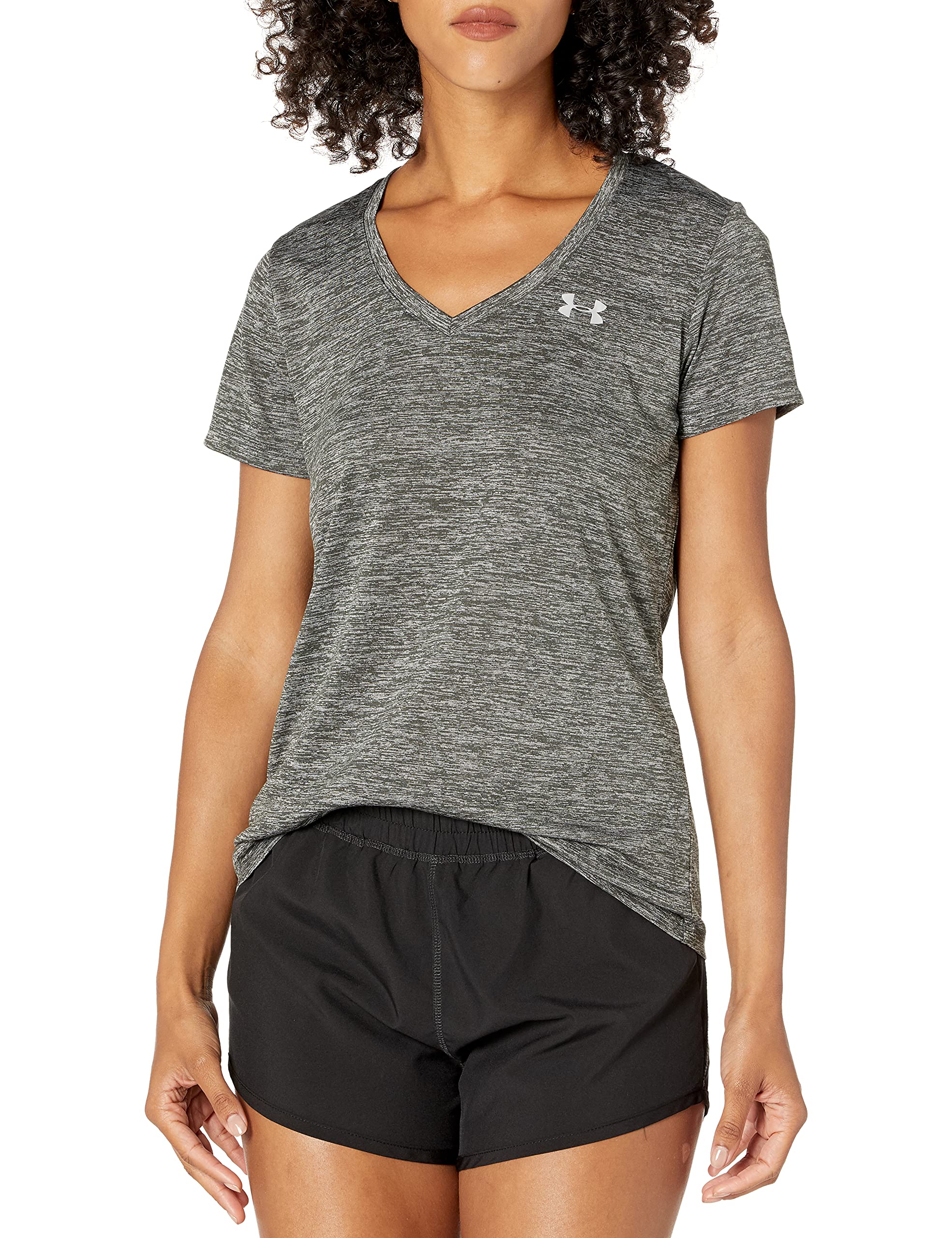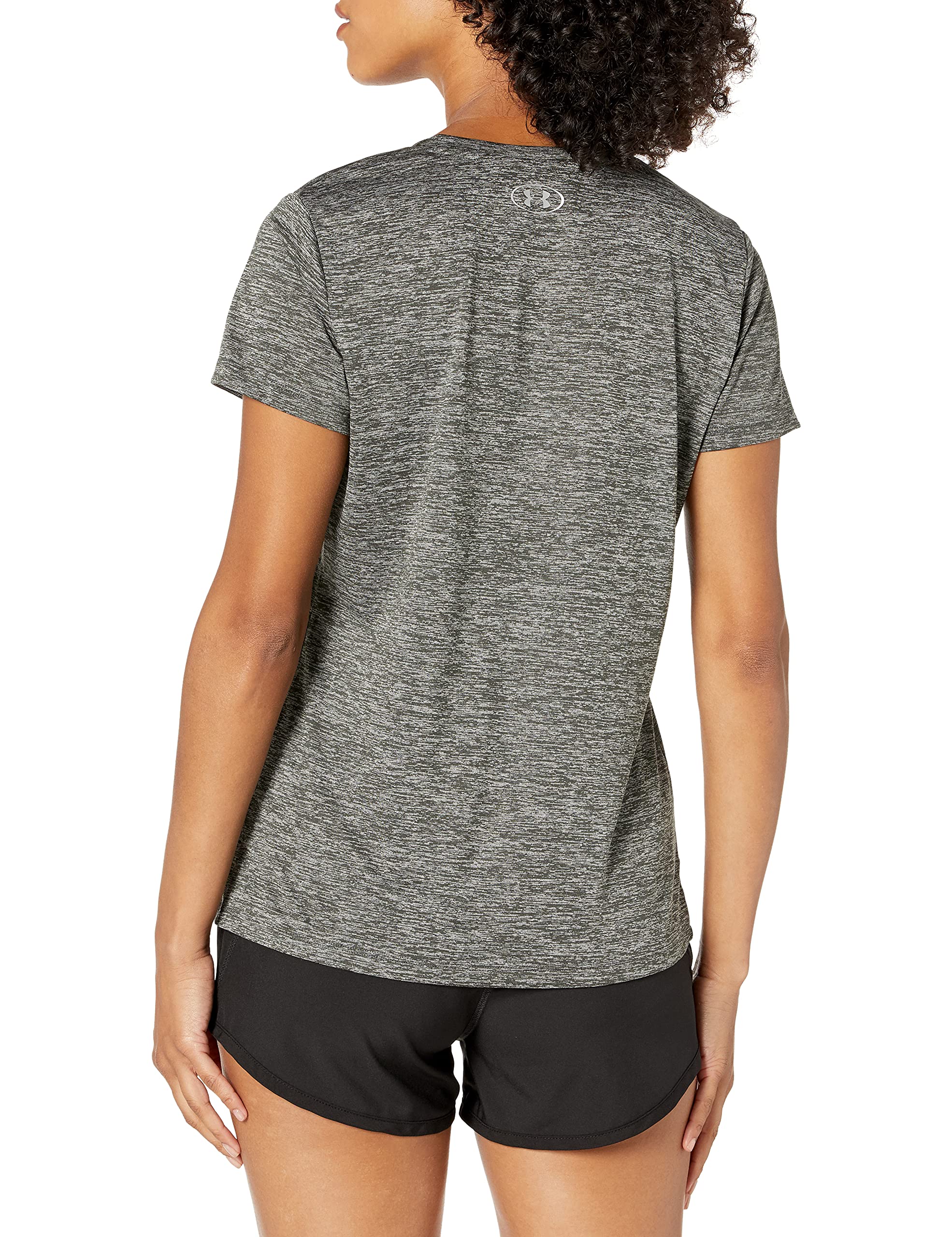Under Armour womens Tech V-Neck Twist Short-Sleeve T-Shirt , Jet Gray (011)/Metallic Silver , Small