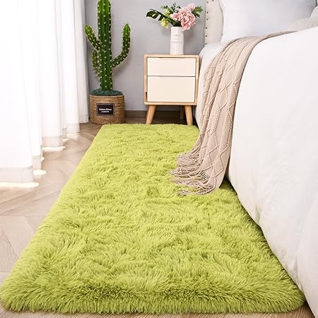 Unirea Fluffy Runner Rug for Bedroom Living Room 2x6 Feet, Green Shag Area Rugs Soft Plush Carpet Thick Long Fur Rug for Hallway Bedside Kids Nursery Girls Room Home Decor Mats