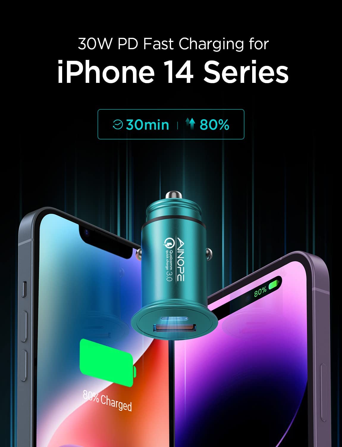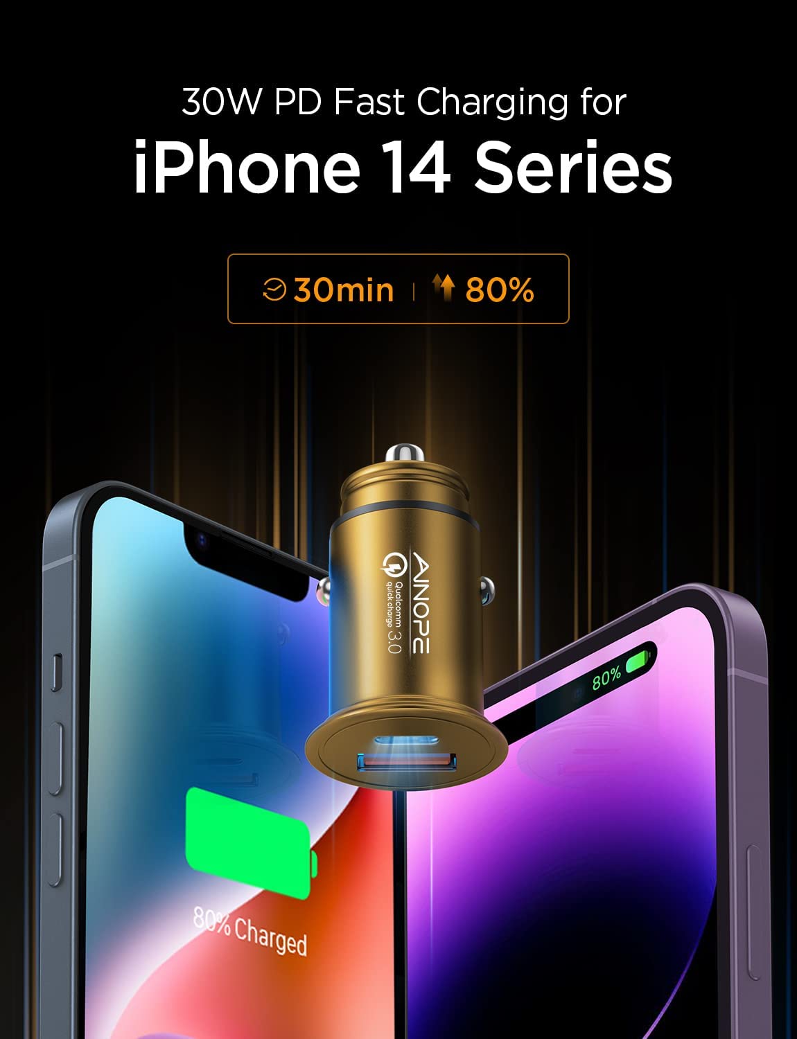 • ⚡FAST CHARGER TWO DEVICES SIMULTANEOUSLY: Equipped with USB A(QC3.0) port and USB C(PD3.0) port, AINOPE cigarette lighter usb charger can charge two devices simultaneously, no drop in power even when simultaneously fast charging as its indepent PD&QC3.0 protocol chip. (❤️TIPS: IPHONE REQUIRES A LIGHTNING TO C CABLE FOR CHARGING(NOT INCLUDED!!!).