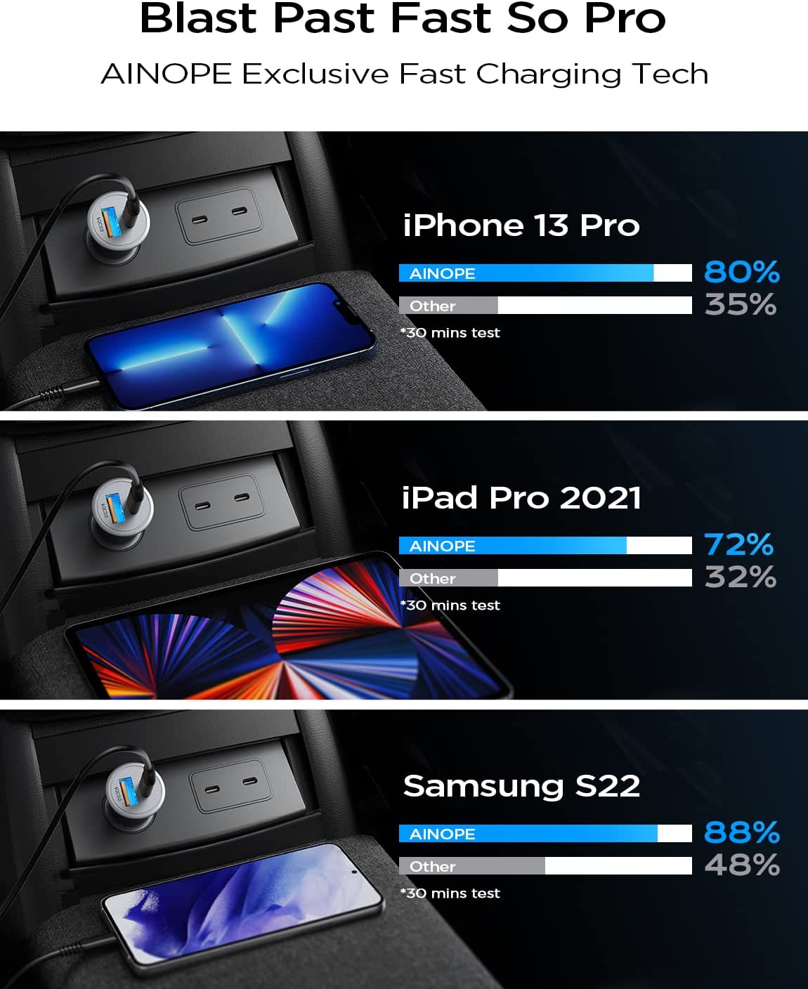 • ⚡WIDELY COMPATIBILITY: AINOPE USB C & A car charger can automatically identifies any devices you plug in and distributes the optimal charging efficiency for you. Widely compatible with iPhone 14 Pro Max 14 Pro 14 Plus 14 iPhone 13 Pro Max iPhone 12/11/XR/XS, iPad Pro/iPad Air/iPad mini, Macbook air, Samsung Galaxy S23 S22 Ultra/Samsung S21 Ultra/S20/ Note 20/10 A52 A71 A51 A10E S9 S9, Google Nexus 6P Pixel 5 4xl 3xl 2xl 3a 4 4a, LG G8 G7 ThinQ V50 V40 V35 V30 V30s, HTC One M9+, Blue, LG, Nokia, Motorola, Kindle Fire HD 10, Compatible with 12/24V cars, trucks, RV and etc.