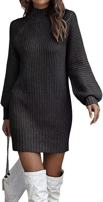 Women 2024 Fall Winter Oversized Mini Sweaters Dress Pullover Mock Neck Long Lantern Sleeve Loose Tunic Knit Pullover Jumper