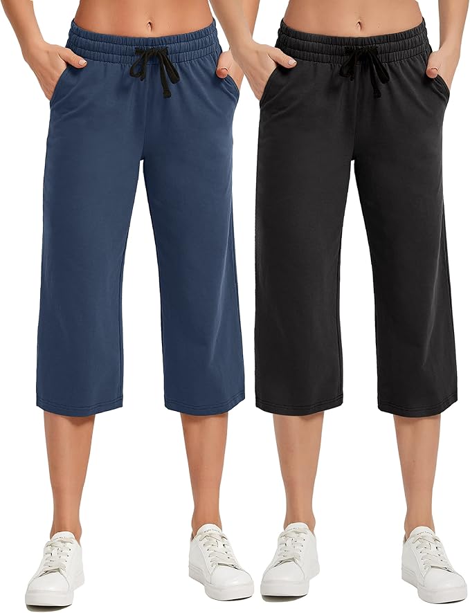 SPECIALMAGIC Women Capri Pants Cotton Yoga Wide Leg Capris Sweatpants Sports 2 Pack