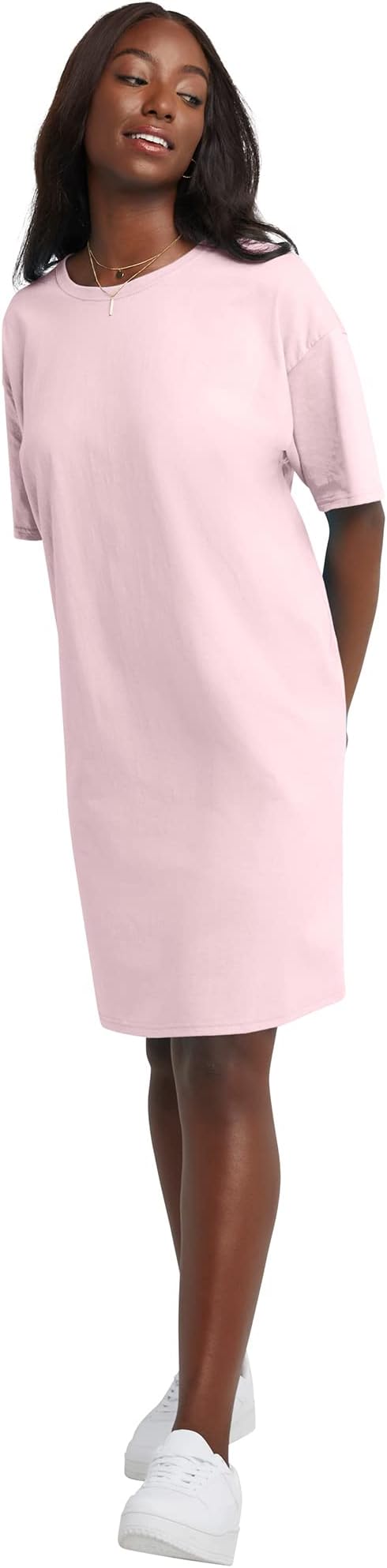 Hanes Women's Essentials Cotton T-Shirt Dress, Wear Around Jersey Oversized Shirt