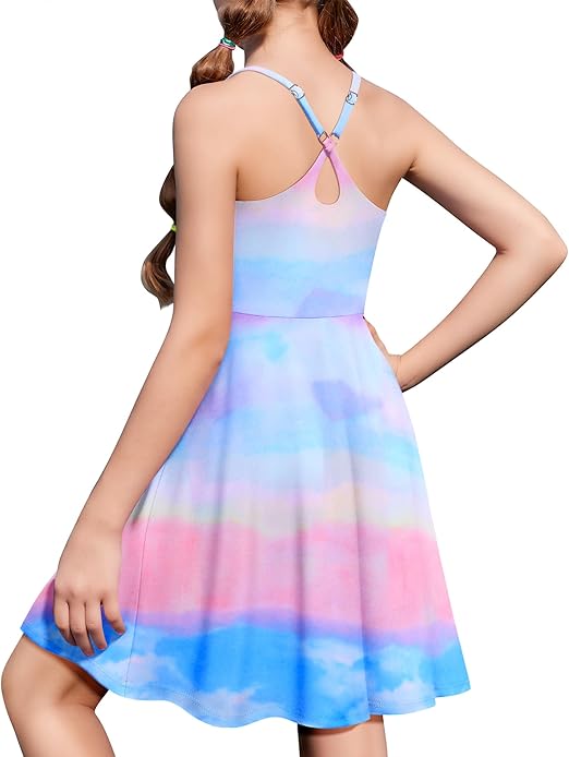 Zaclotre Girls Dresses with Romper Shorts and Pockets Summer Adjustable Spaghetti Straps Athletic Golf Tennis Dress for Kids