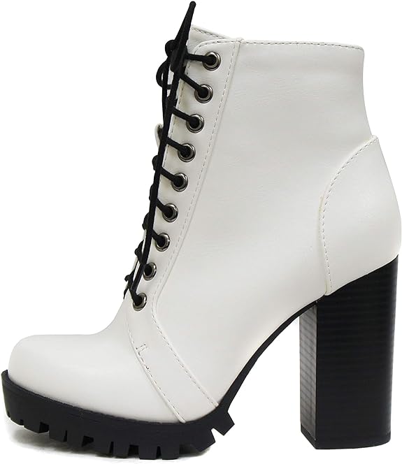 Soda Chalet _¾_ Fashion Lace up Military Inspired Ankle Boot with Stacked Heel and Side Zipper