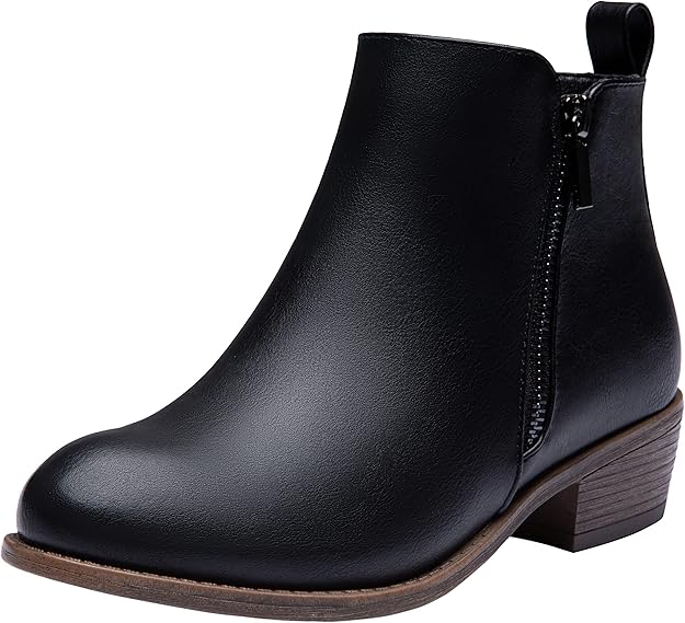 Vepose Women's Ankle Boots Low Heel Casual Boot Round Toe Zipper Booties for Women