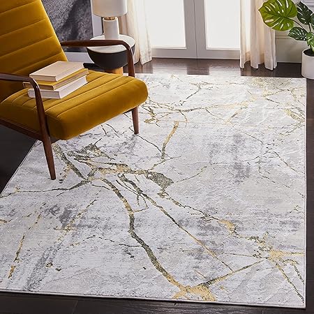 SAFAVIEH Amelia Collection Area Rug - 10' x 14', Grey & Gold, Modern Abstract Design, Non-Shedding & Easy Care, Ideal for High Traffic Areas in Living Room, Bedroom (ALA293G)