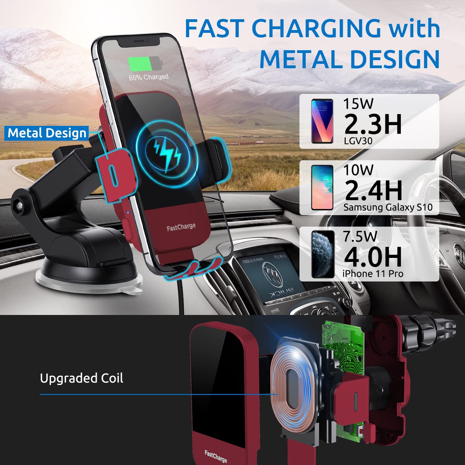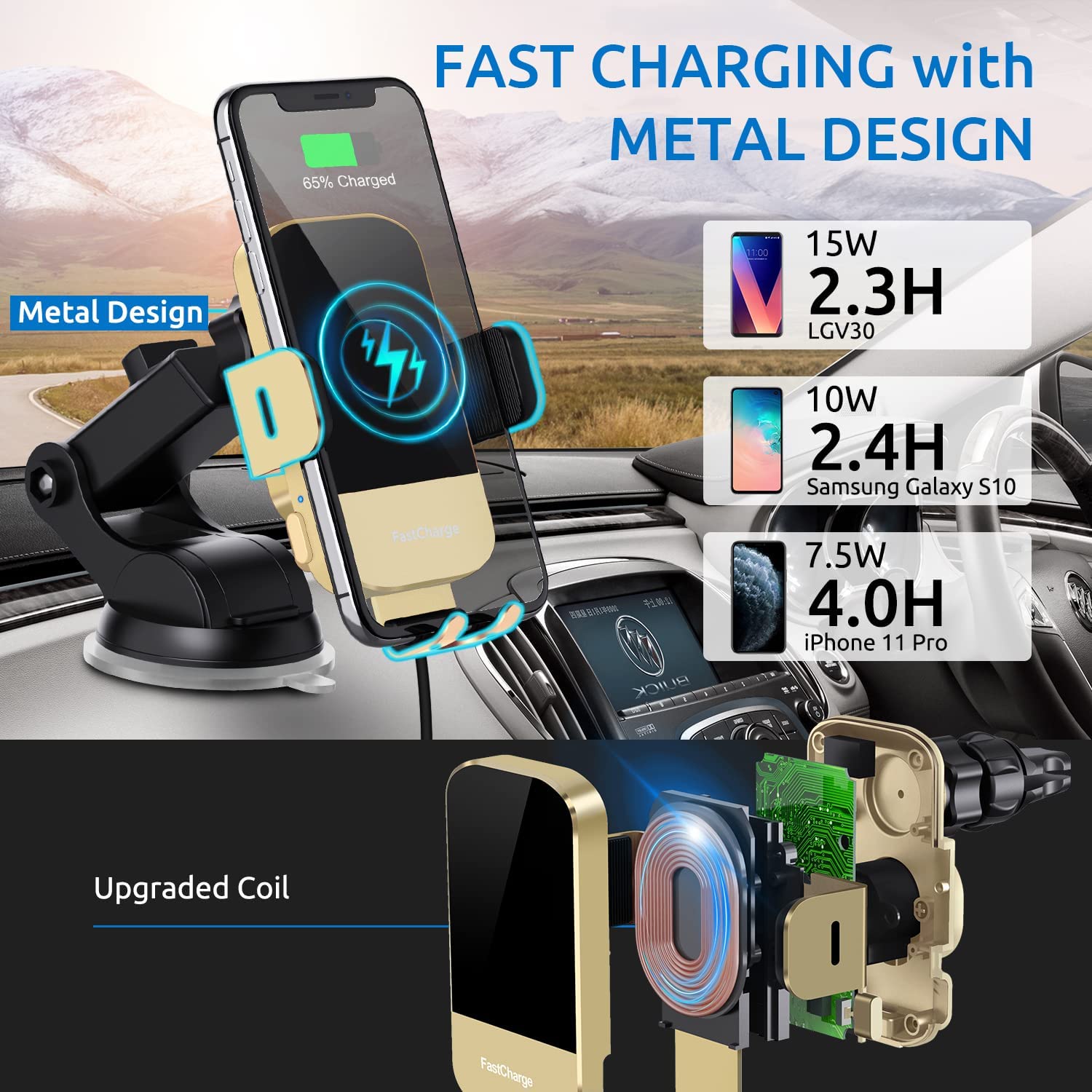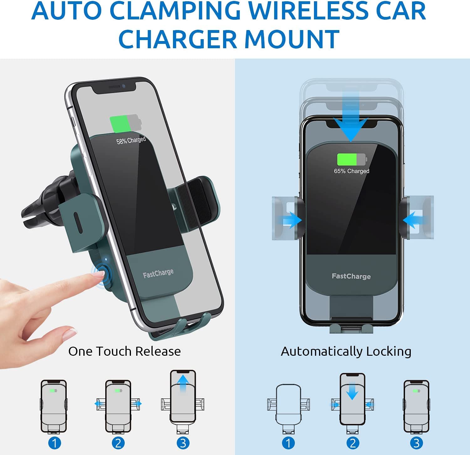 CHGeek Wireless Car Charger, 15W Fast Charging Auto Clamping Car Charger Phone Mount Phone Holder fit for iPhone 14 13 12 11 Pro Max Xs, Samsung Galaxy S23 Ultra S22 S21 S20, S10+ S9+ Note 9, etc