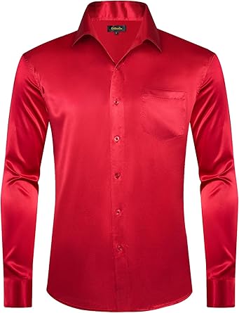 DiBanGu Mens Dress Shirt Long Sleeve Solid Satin Regular Fit Casual Button Down Shirts for Wedding Party Formal