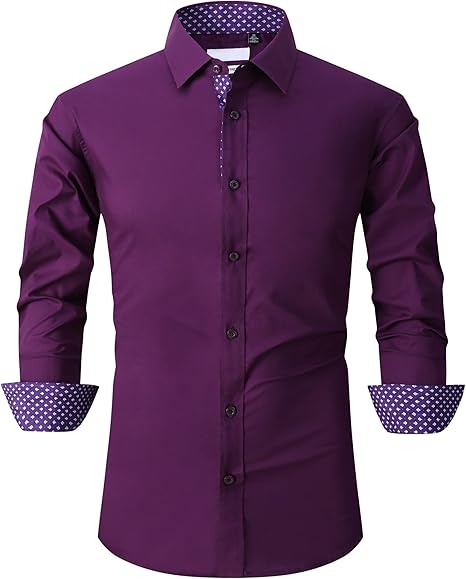 Esabel.C Mens Dress Shirts Wrinkle Free Regular Fit Casual Button Down Shirts
