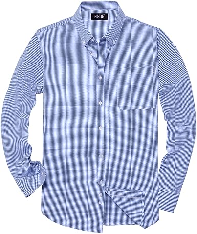 Hi-Tie Mens Oxford Shirts Button Down Long Sleeve Regular Fit with Pocket Business Wedding Casual Shirt