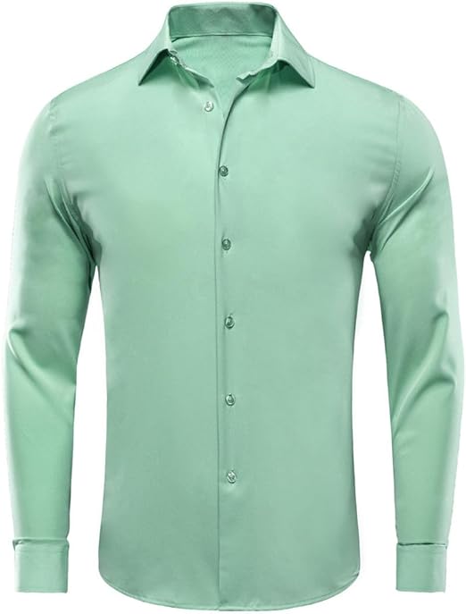Hi-Tie Silk Mens Shirts Lapel Long Sleeve Dress Suit Shirt Jacquard Paisley Solid Blouse
