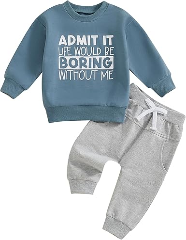 wdehow Toddler Baby Boy 2Pcs Outfits Letters Print Pullover Tops + Drawstring Pants Set Fall Winter Clothes