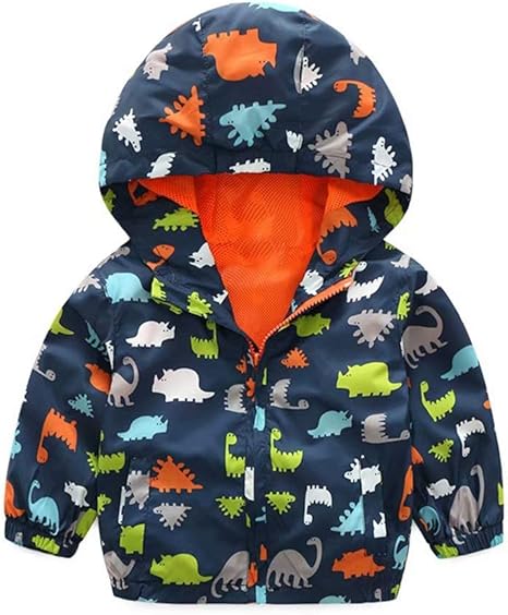 Boys' Hooded Dinosaur Jacket Windbreaker Outerwear
