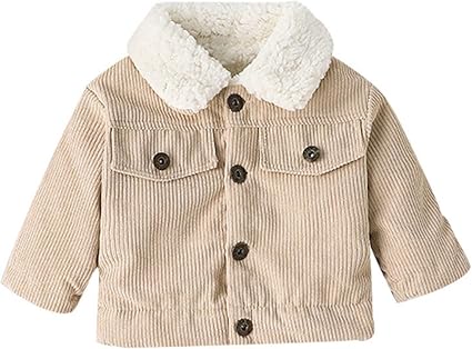 Noubeau Baby Boys Girls Corduroy Jacket Kids Toddler Sherpa Lined Top Lapel Button Down Thicked Warm Coat Winter Outerwear