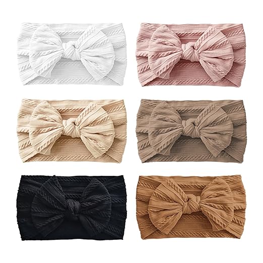 6PCS Baby Headbands, Girls Headbands with Bows, Soft Stretchy Nylon Hair Bands Hair Accessories for Newborn Infant Toddler