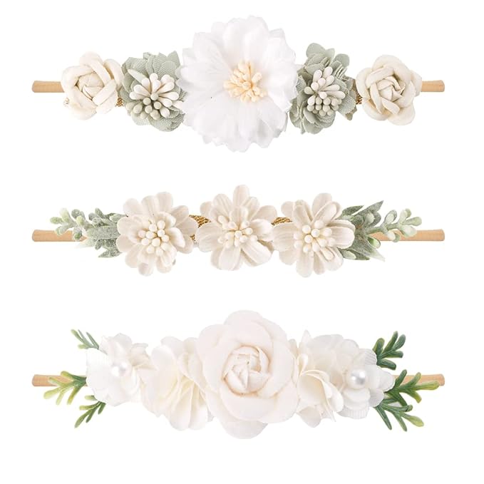 cherrboll 3pcs Baby Girl Flower Headbands, Super Soft & Stretchy Nylon Floral Hairbands for Newborn Toddler