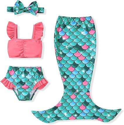 Baby Girl Mermaid Swimsuit Bathing Suits Bikini Set with Headband