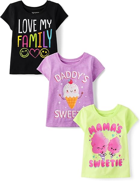 The Children's Place Baby Girls' and Toddler Family, mom, dad, Sibling Short Sleeve Graphic T-Shirts, multipacks