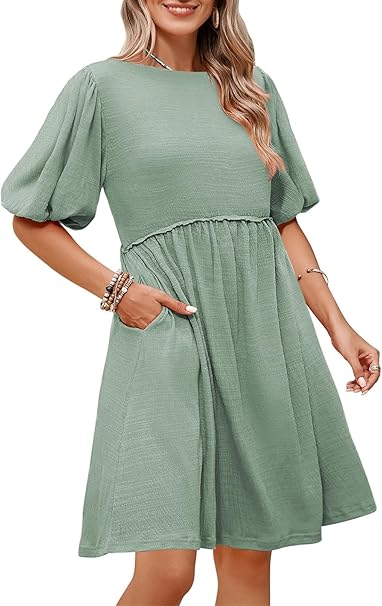 Pink Queen Women's Swimsuit Cover Up Dress Crew Neck Tunic Bathing Suit Beach Mini Tiered Babydoll Dress Casual