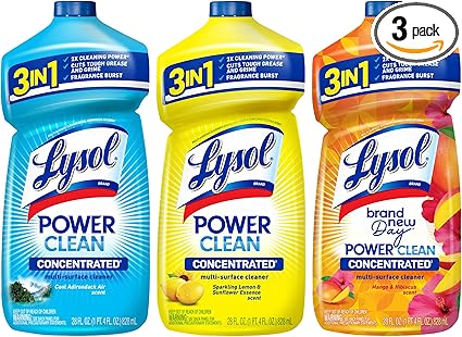 Bundle of LYSOL Power Clean Multi-Surface Cleaner, 2x Concentrated Pour 3x28oz, Cool Adirondack scent, Sparkling Lemon & Sunflower Essence scent, Mango & Hibiscus