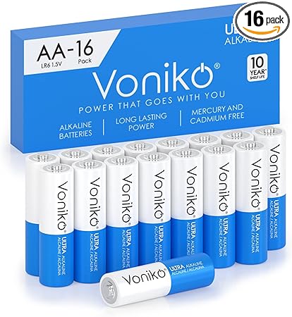 Voniko - Premium Grade AA Batteries -16 Pack- Alkaline Double A Battery - Ultra Long-Lasting, Leakproof 1.5v Batteries - 10-Year Shelf Life