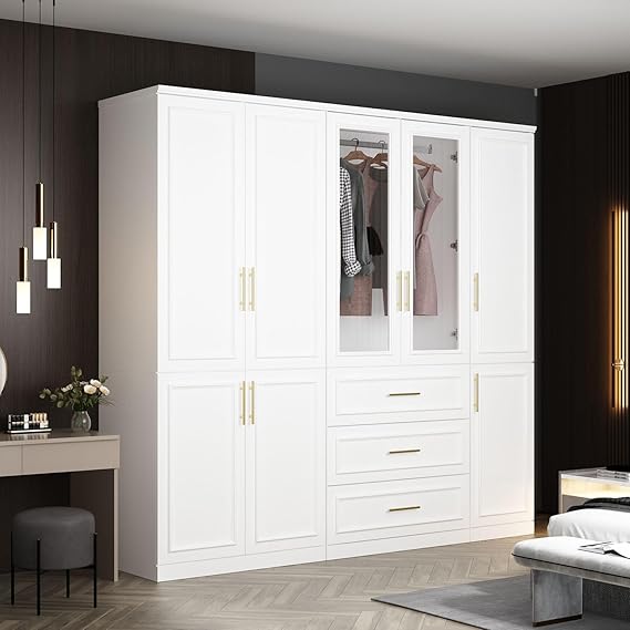 FAMAPY Large Armoire Wardrobe Closet Collection with Drawers & Hanging Rods, Wardrobe Armoire with Gold Metal Handles, Large Armoire for Bedroom White (79.3_‹�W x 19.3_‹�D x 74.9_‹�H)