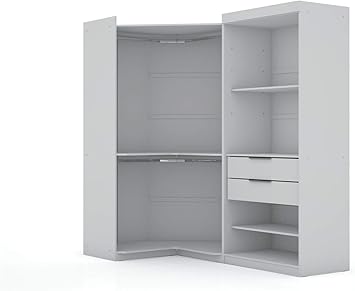 Manhattan Comfort Mulberry 2.0 Corner Wardrobe Closet with Drawers, Hanging Rods and Adjustable Shelves, Free Standing, Open Sectional Design for Bedrooms & Dressing Rooms, 2 Piece Set, White