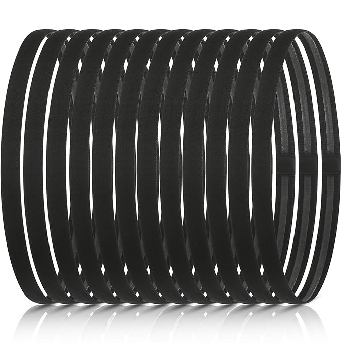 WILLBOND 12 Pieces Thin Non-Slip Elastic Sport Headbands, Hair Bands with Non Slip Silicone Grip Exercise Hair Sweatbands for Men Women Football Basketball Soccer Tennis Yoga (Black)