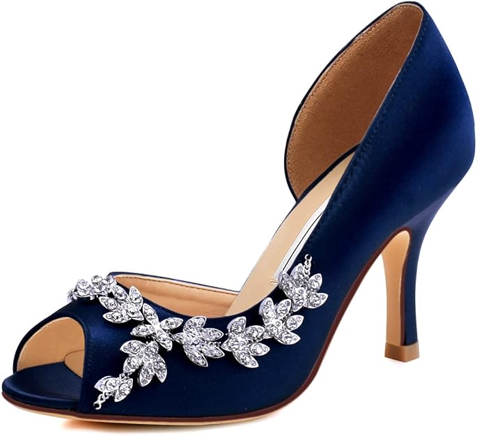 ELEGANTPARK Wedding Heels Peep Toe Wedding Shoes for Bride High Heels Rhinestones Bridal Shoes Satin Evening Party Prom Dress Shoes Pumps