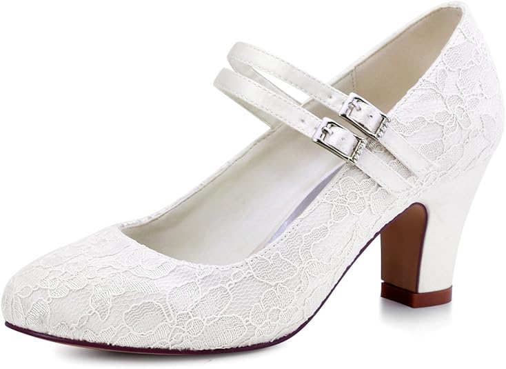 ELEGANTPARK Wedding Shoes for Bride Closed Toe Bridal Shoes Block Heel Pumps Mary Jane Lace Wedding Shoes