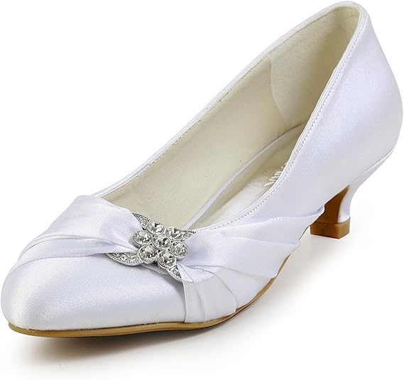 ELEGANTPARK Women Closed Toe Comfort Heel Rhinestone Satin Wedding Bridal Shoes