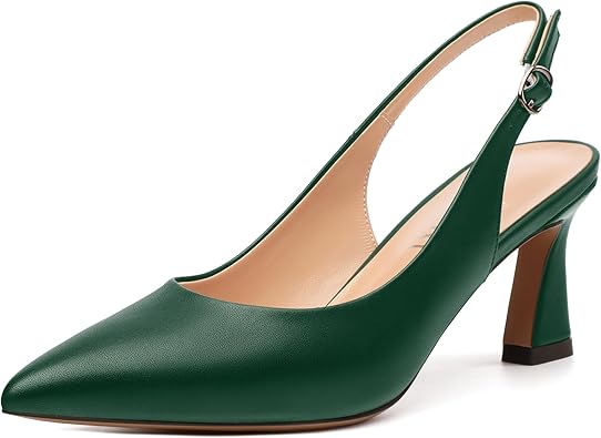 Women's Slingback Pumps Kitten Heel Pointed Toe Pumps for Women Comfort Kitten Mid Heels Buckle Pumps Wedding Party Dance Shoes
