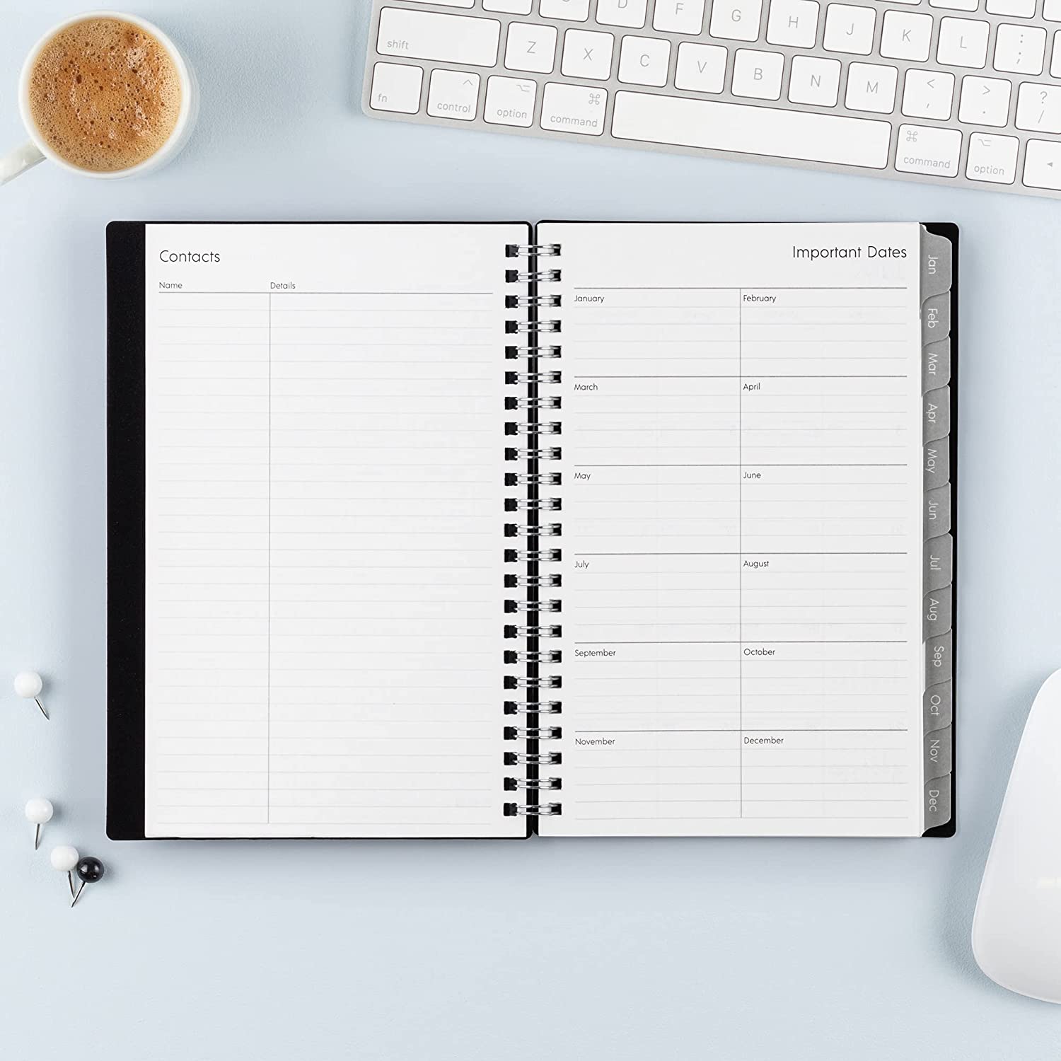• Printed on high quality white paper for clean writing space, with premium quality covers in a professional design and durable, coated tabs that withstand constant use throughout the year