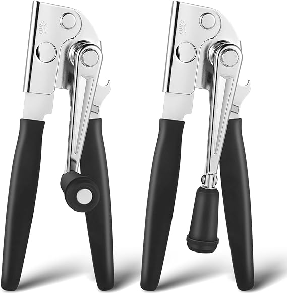 Dreyoo 2 Pack Commercial Can Opener Manual Heavy Duty, Stainless Steel Handheld Can Opener with Folding Easy Crank Handle, Smooth Edge, Black Swing Grips, for #10 Bulk Cans and All Size Cans