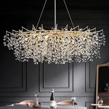 Gold Modern Crystal Chandeliers, Rectangle Snowflake Tree Branch Chandelier Luxury Ceiling Pendant Light Fixture for Entryway Dining Room Bedroom Living Room 47.2"