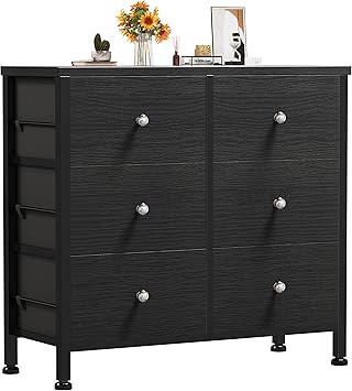 BOLUO Black Dresser for Bedroom 6 Drawer Dressers & Chests of Drawers Small Fabric Dresser Storage for Closet Modern