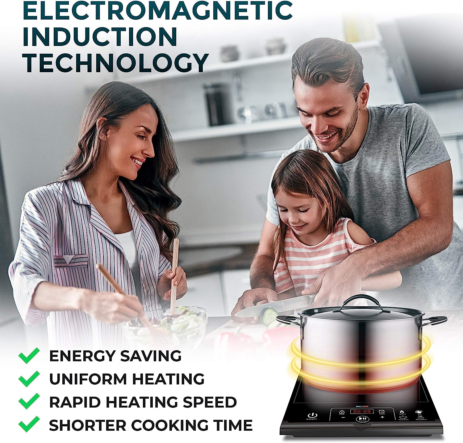 • Digital Touch Control Panel And LED Display: This great induction cooktop has built-in count-down digital timer with 1 minute increments up to 240 minutes and 8 - temperature range from 140 °F to 460 °F; 8 power levels from 200 to 1800 Watts. Try it out and thank us later. Choose between 4 preset programs: hot pot, slow cook, boil and keep warm with ease.
