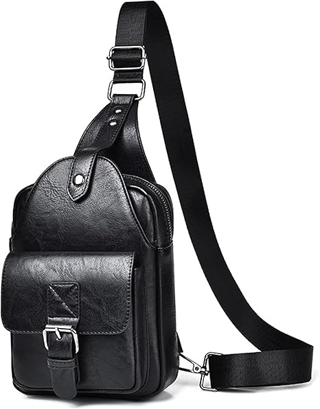 Men's Crossbody Bag Small Leather Sling Bag Multi-pocket Shoulder Bag Mini Chest Bag for Hiking Travel