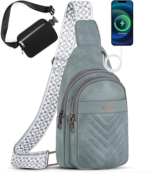 Sling Bag for Women, Leather Crossbody Bag Sling Bag Crossbody Backpack for Travel Sports Running Hiking for Man Woman