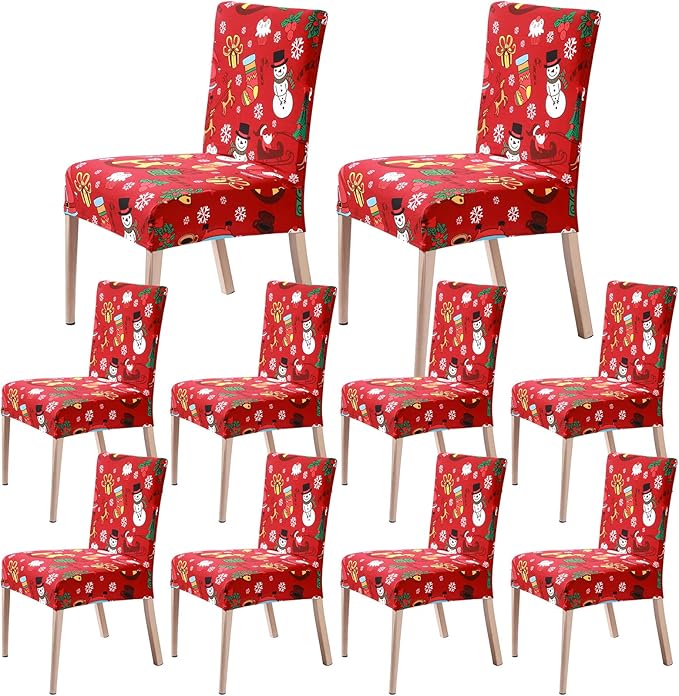 10 Pcs Christmas Chair Covers Set Xmas Dining Room Stretch Slipcovers Santa Snowman Removable Chair Seat Cover Washable Dining Chair Protectors Covers Christmas Chair Decorations for Home Kitchen