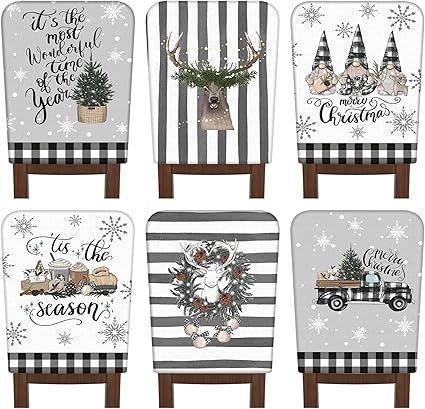 6 Pcs Christmas Chair Covers Christmas Chair Back Covers Xmas Chair Protector Slipcovers Washable Winter Dining Room Seat Covers for Home Hotel Kitchen Decorations (Black and White Checker)