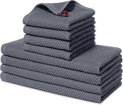 Homaxy 100% Cotton Kitchen Towels and Dishcloths Set, 12 x 12 Inches and 13 x 28 Inches, Set of 8 Bulk Kitchen Towels Set, Ultra Soft Absorbent Dish Cloths for Washing Dishes, Dark Grey
