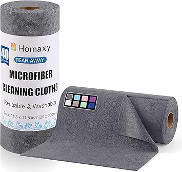 Homaxy Tear Away Dish Cloths Rolls, 40 Sheets-11.8" X 11.8", Reusable Washable Dish Towels for Kitchen, Ultra Absorbent and Quick Drying Microfiber Cleaning Rags, Grey