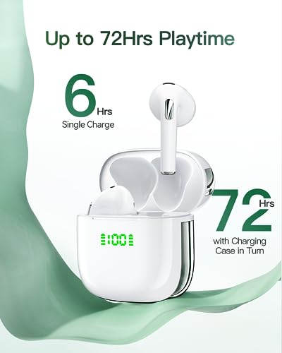 • 72Hrs Playback & Dual LED Power Display: Earbuds offer up to 6hrs of playback on a single charge and up to 72 hours in turn with the charging case, which allows you can enjoy an entire day of audio. Headphones wireless bluetooth feature a dual digital display that makes you can easily monitor the battery level, ensuring timely charging. You can recharge the earbuds wireless bluetooth with the included type-C cable or wireless charging via a Qi-certified charging pad (not included).