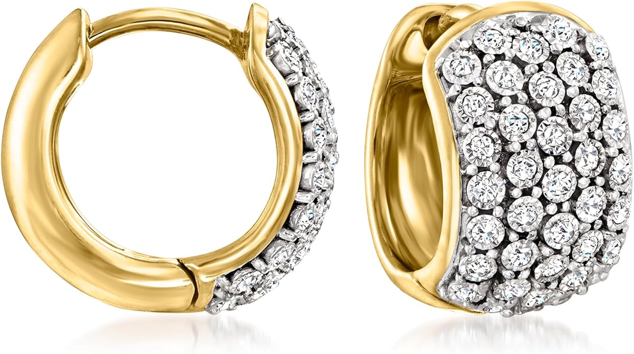 Ross-Simons 0.25 ct. t.w. Pave Diamond Huggie Hoop Earrings in 18kt Gold Over Sterling
