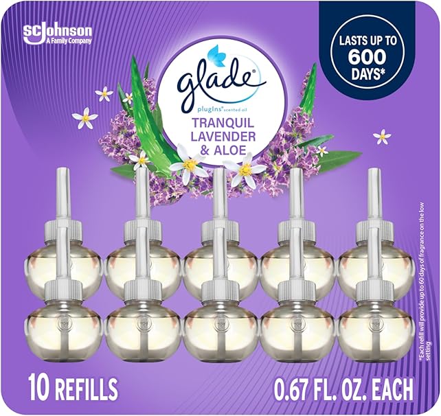 Glade PlugIns Refills Air Freshener, Tranquil Lavender & Aloe, Scented and Essential Oils for Home and Bathroom, 0.67 Fl Oz, 10 Count